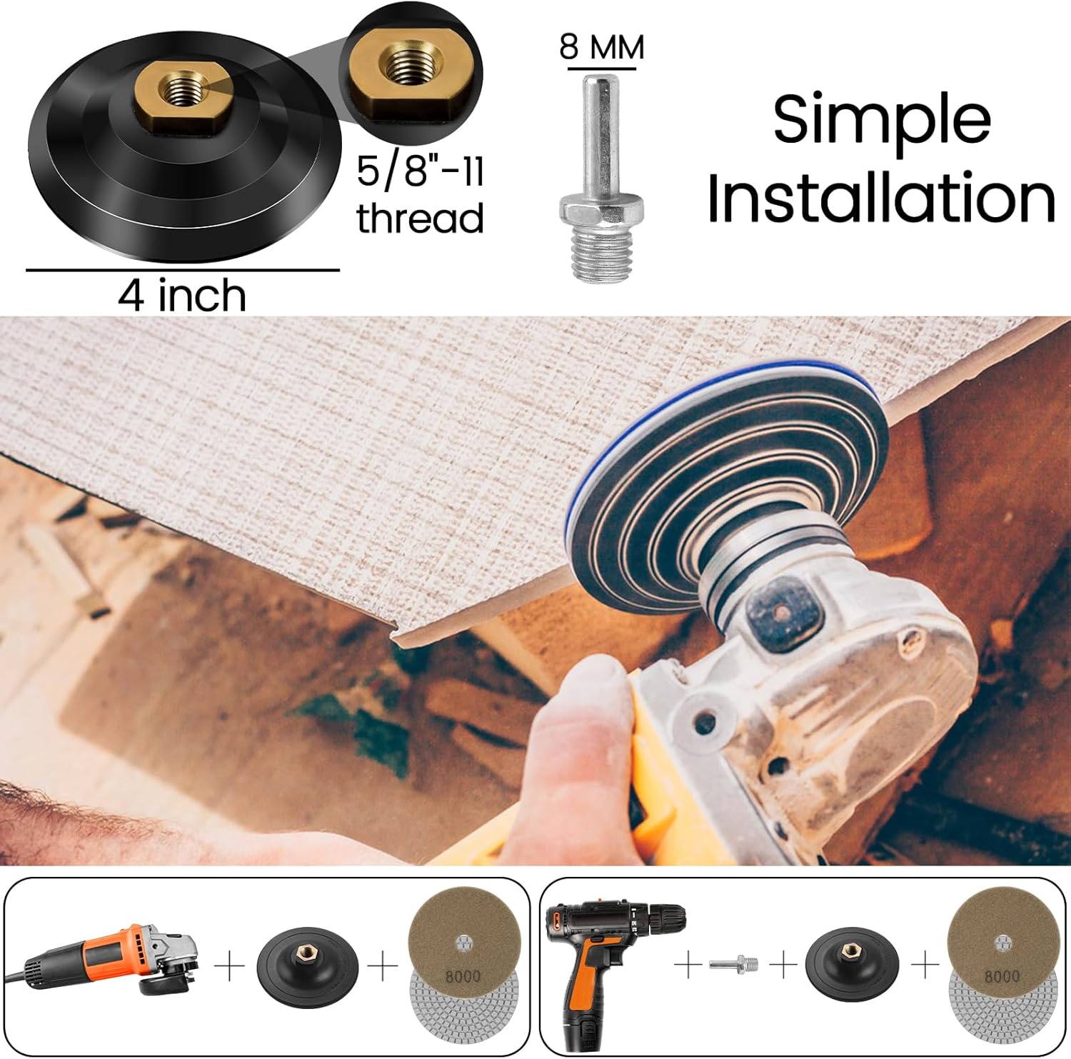 4 Inch Diamond Polishing Pads,16 Pack Wet/Dry Polish Pad Kit with 5/8’’-11 Backer Pad for Drill, Grinder, Polisher,30-8000 Grit Pads for Granite Marble Concrete Stone Quartz