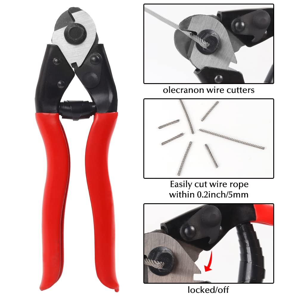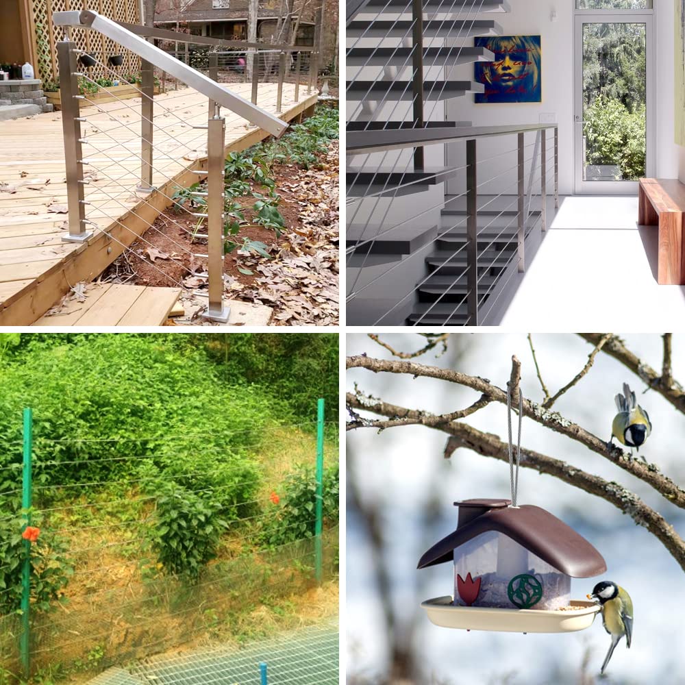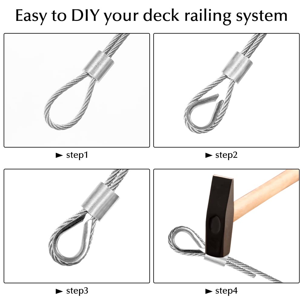 Wire Rope 1/8” Stainless Steel Cable with Cutter,165FT Aircraft Cable 7X7 Strands Construction with 20pcs Crimping Sleeves,20pcs Thimbles for Decking Railings Stair